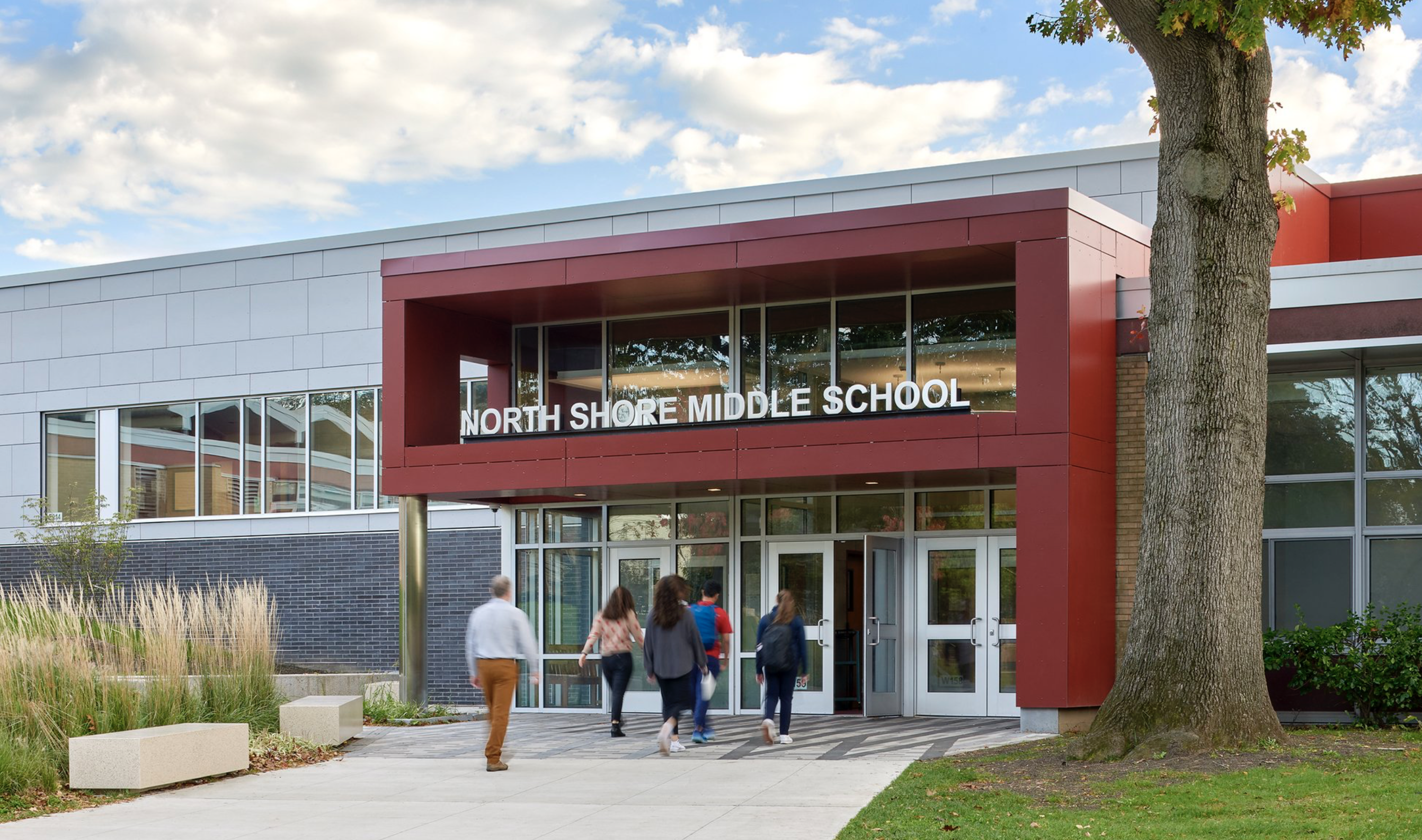 North Shore Middle School Swisspearl Fiber Cement Rainscreen Solution with Cladding Corp Subframing