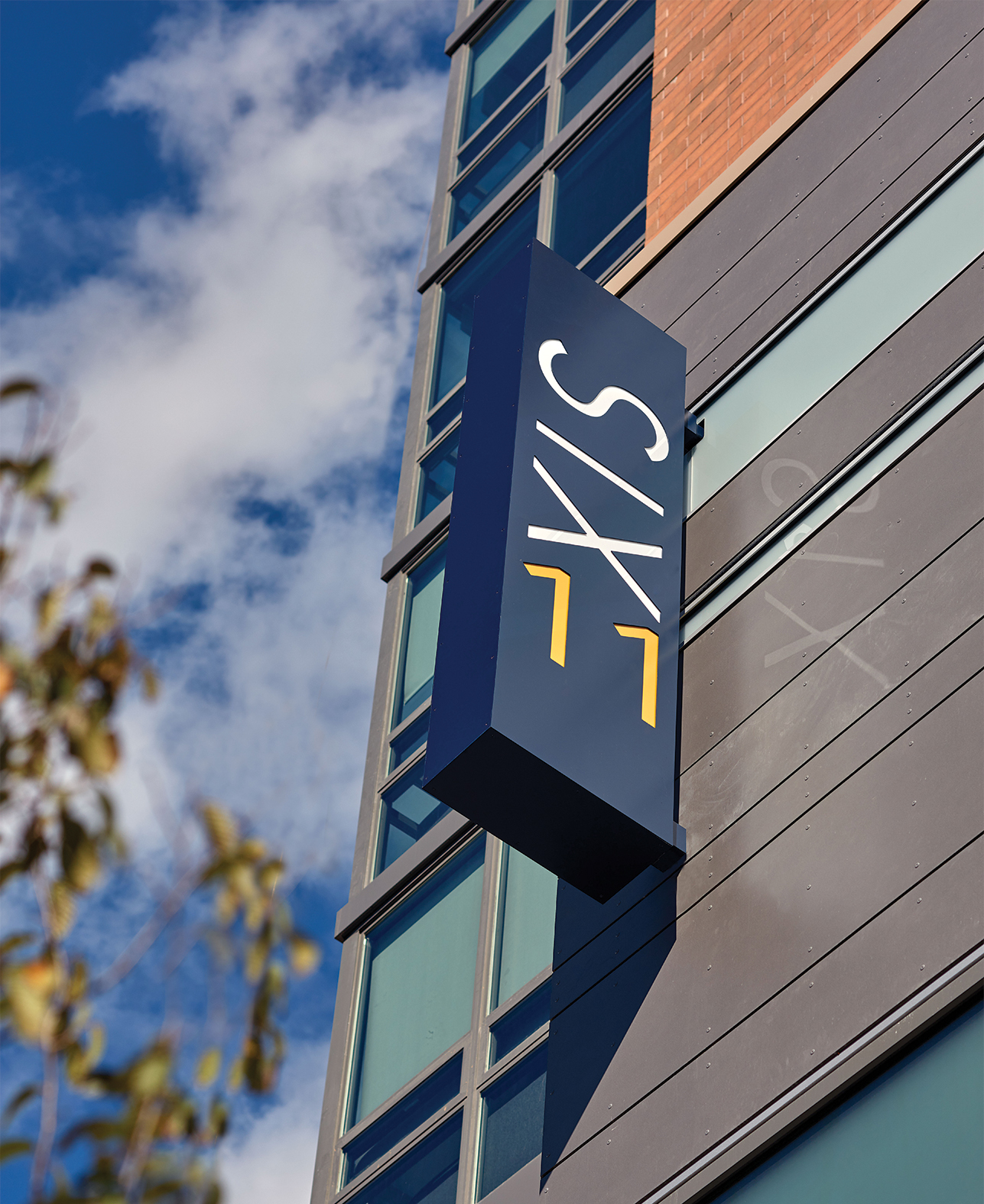 Six11 (611 E University Ave, Ann Arbor) is a striking 13-story student housing tower designed by WDG Architecture just steps from the University of Michigan campus. The contemporary façade features Swisspearl HDFC fiber cement panels in sophisticated grey tones at street level, transitioning into rich brick above—both systems expertly supported by ECO Cladding’s adjustable rainscreen attachment solution. ECO’s engineered system ensured seamless integration of materials, offering thermal efficiency and long-lasting durability to meet university housing standards. This high-profile development showcases how ECO Cladding enhances architectural design while delivering performance and aesthetic excellence.